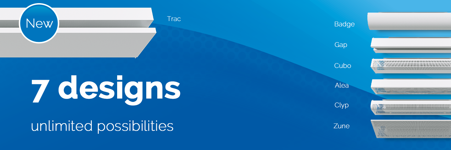 Lisaks klassikalistele kaantele, Badge ja Clyp, oleme välja töötanud viis värsket uut kujundust: Alea, Cubo, Gap, Trac ja Zune. Need kujundused on välja töötatud Klaus Nolting, ON3D, Saksamaalt Hamburgist. "Standardseid ventilatsioonitooteid on keerulisem integreerida arhitektuuri DNA-sse kui täiendavaid esteetilisi elemente."
