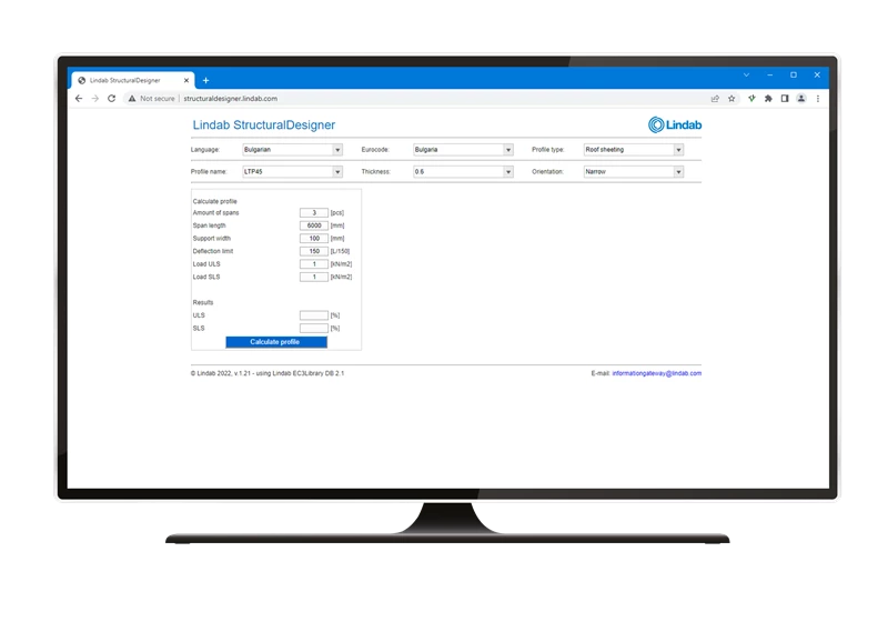 StructuralDesigner on Eurokoodil põhinev projekteerimistarkvara profiilplekkidele, roovidele ja mütsiprofiilidele. Lisatud on Lindabi täielik profiilide valik nendes tootekategooriates. Tarkvaral on sisseehitatud moodul lumetaskute analüüsimiseks ja see esitab tulemused Ultimate Limit State ja Service Limit State.